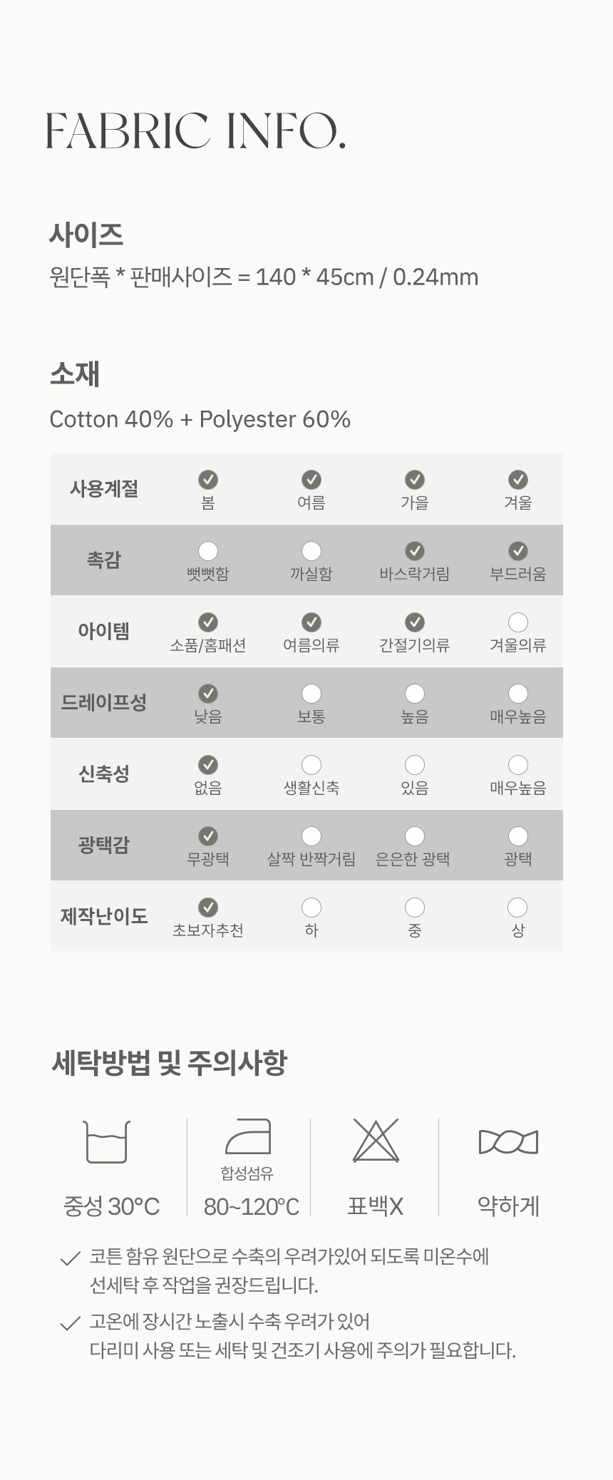* Áø»ö ¼ÒÀç Æ¯¼º»ó ¾à°£ÀÇ ¹°ºüÁü ¿ì·Á ¹× ÄÚÆ° ÇÔÀ¯ ¿ø´ÜÀ¸·Î ¾à°£ÀÇ ¼öÃà ¿ì·Á°¡ ÀÖ¾î ¹Ì¿Â¼ö¿¡ ´Üµ¶ ¹× ¼±¼¼Å¹ ÈÄ ÀÛ¾÷À» ±ÇÀåµå¸³´Ï´Ù.